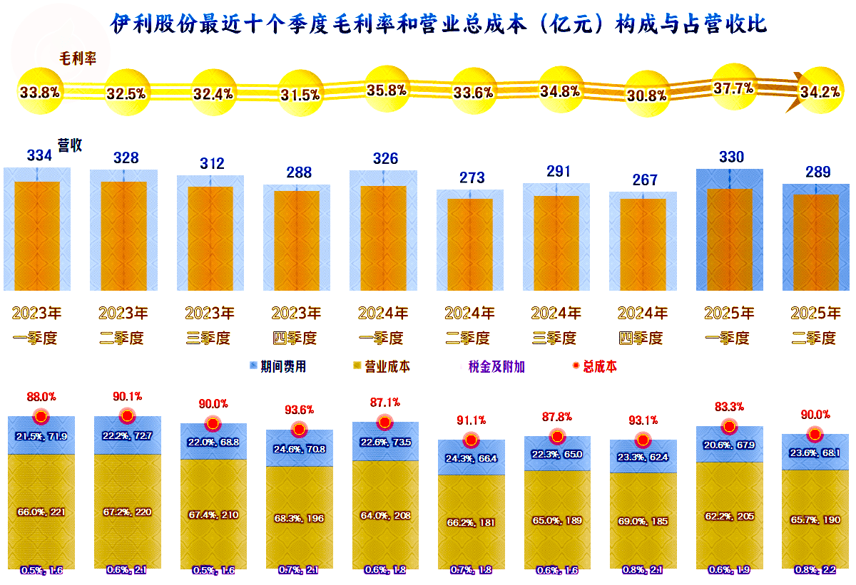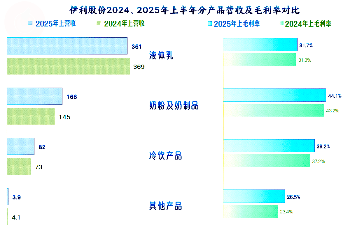 2025年上半年,伊利股份的营收同比增长了3.4%,虽然扭转了2024年上半年和全年下跌的不利局面,但其营收规模仍然不及2022年和2023年上半年,发展的势头确实不太乐观。