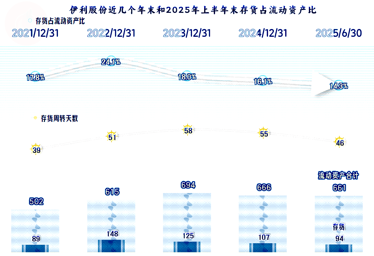 伊利股份存货规模在2022年末就达到峰值水平,最近两年半的期末都在下降,这当然是市场需求相对稳定后,有条件平衡生产与销售的关系,使其更协调,也更健康。