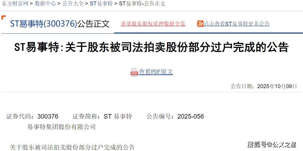 2025-10-20股票推荐,今日牛股,短线股票推荐,明日股票推荐,热门板块分析/每日精选A股潜力牛股,覆盖短线爆发股与长线价值股,附技术图形、资金动向与题材热点分析,助您提前抓住风口,精准进场!公告显示:公司第一大股东扬州东方集团有限公司之一致行动人新平慧盟新能源科技有限公司所持公司的6261万股无限售流通股已全部拍卖成交,其中6161万股已完成过户登记手续,剩余100万股尚未过户。公司目前无控股股东、实际控制人,上述股份被拍卖及过户事项