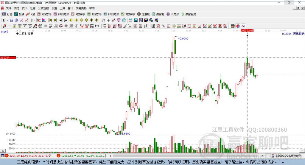 基本面:声迅股份现价32.3, 涨幅1.8%。当前处于“赢家江恩软件”极反通道工具“强势通道”区域