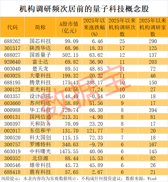 量子科技确实正在从科幻走向现实。中国科学技术大学的祖冲之三号、中国电信的空芯光纤传输实验、国仪量子的量子传感器…这些突破性进展让资本市场为之疯狂。今年以来,量子科技概念股合计获得313次机构调研,11月以来有4只概念股融资净买入超1亿元。中科曙光以4.9亿元居首,国芯科技的量子安全芯片及模组产品已实现量产。