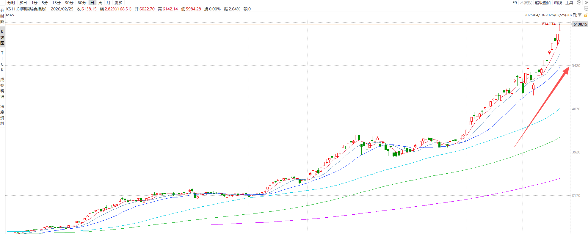 2026-02-26股票推荐,今日牛股,短线股票推荐,明日股票推荐,热门板块分析/每日精选A股潜力牛股,覆盖短线爆发股与长线价值股,附技术图形、资金动向与题材热点分析,助您提前抓住风口,精准进场!说实话,开年这一波,看得我都有点恍惚。以前咱们聊半导体,眼神永远盯着美股那几家,费城半导体指数涨了16%,英伟达呢?磨磨叽叽就干了2%。钱去哪了?打开K线图一眼就明白了——全往韩股跑了。韩综指一口气干穿6100点,SK海力士六个月飚了300%,三星电子涨了180%。
